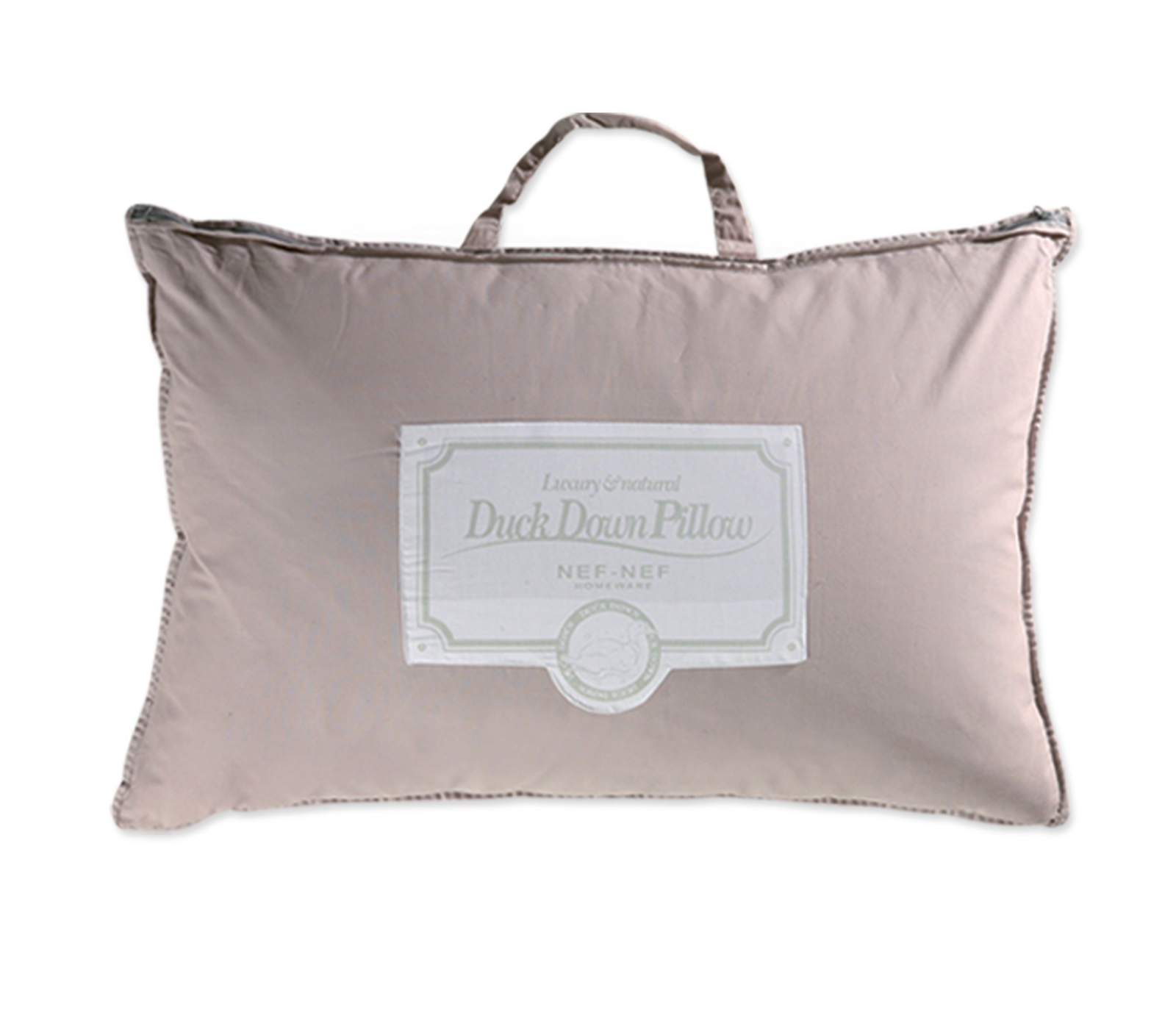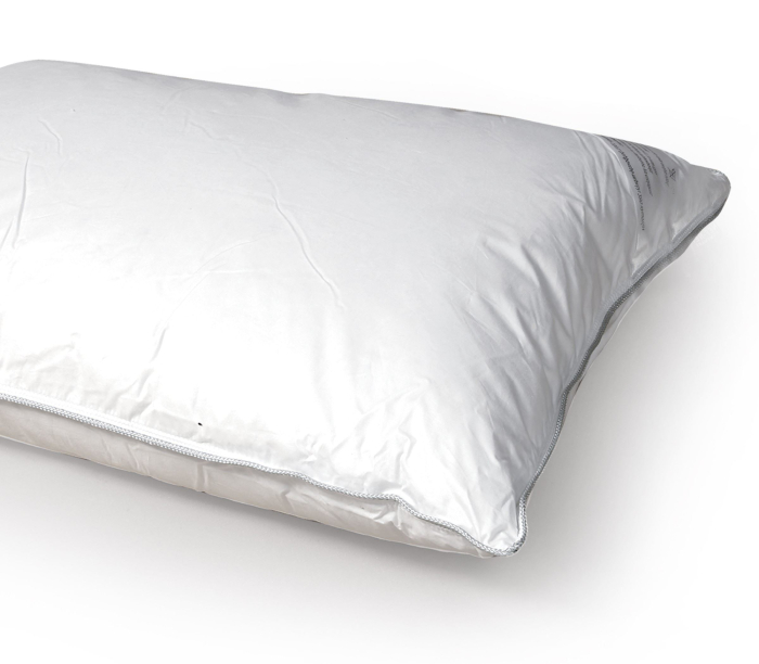 Pernă moale din puf și pene de rață 800g, realizată din 50% puf de rață - 50% umplutură de pene și husă 100% bumbac percal.