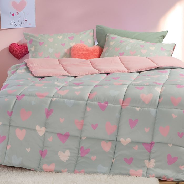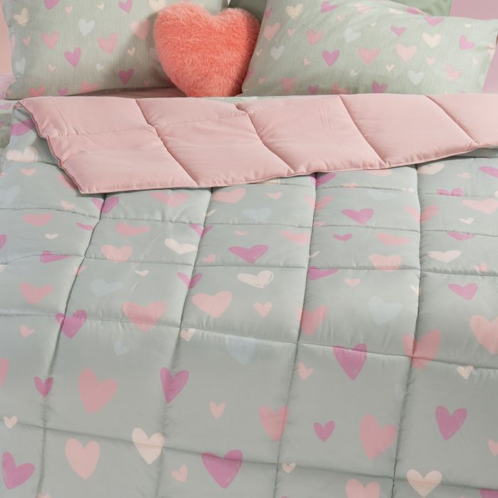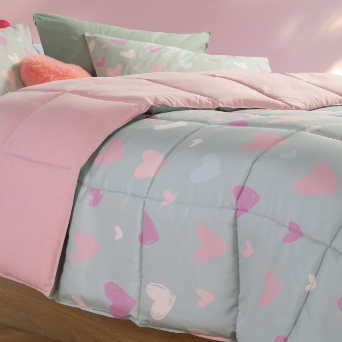 Pilotă pentru copii Hearts Attack . Deosebit de călduroasă și rezistentă, fabricată din 100% microfibră, cu o greutate de 330gr/m2, pentru a oferi un somn confortabil și odihnitor copilului.